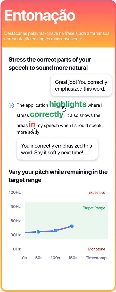 Entre as Top 5 do mundo, ajuda você a corrigir a pronúncia com PRECISÃO EM CADA SÍLABA, graças à tecnologia exclusiva de reconhecimento de voz.